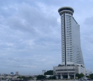 Aus dieser Höhe hat man von jedem Zimmer aus einen grandiosen Blick über Bangkok. Zudem ist die Luft in dieser Höhe doch um etwas besser als auf den Strassen. Zugegeben die Lage ist nicht ganz ideal, doch man ist mit dem Taxi sehr schnell in an den neuralgischen Punkten. Zudem gibt es im Statetower Bars und Restaurants, die sich wirklich sehen lassen können. Zumindest an einem Abend sollte man sich einen Tisch im Brezee oder im Schirocco reservieren. Das Breze ist dabei um einiges günstiger und bietet ebenfalls eine hervorragende internationale Küche.